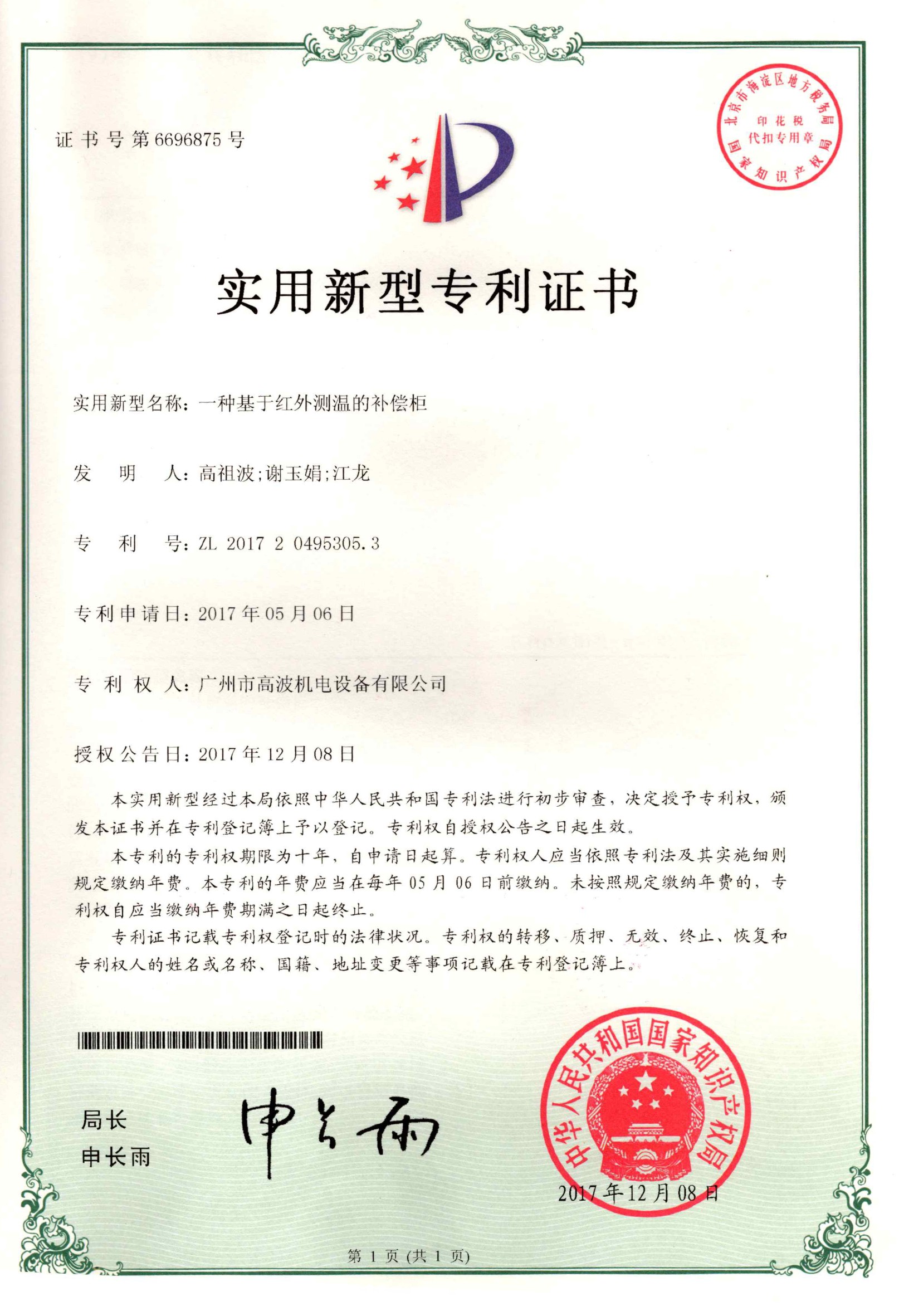 高新及专利证书