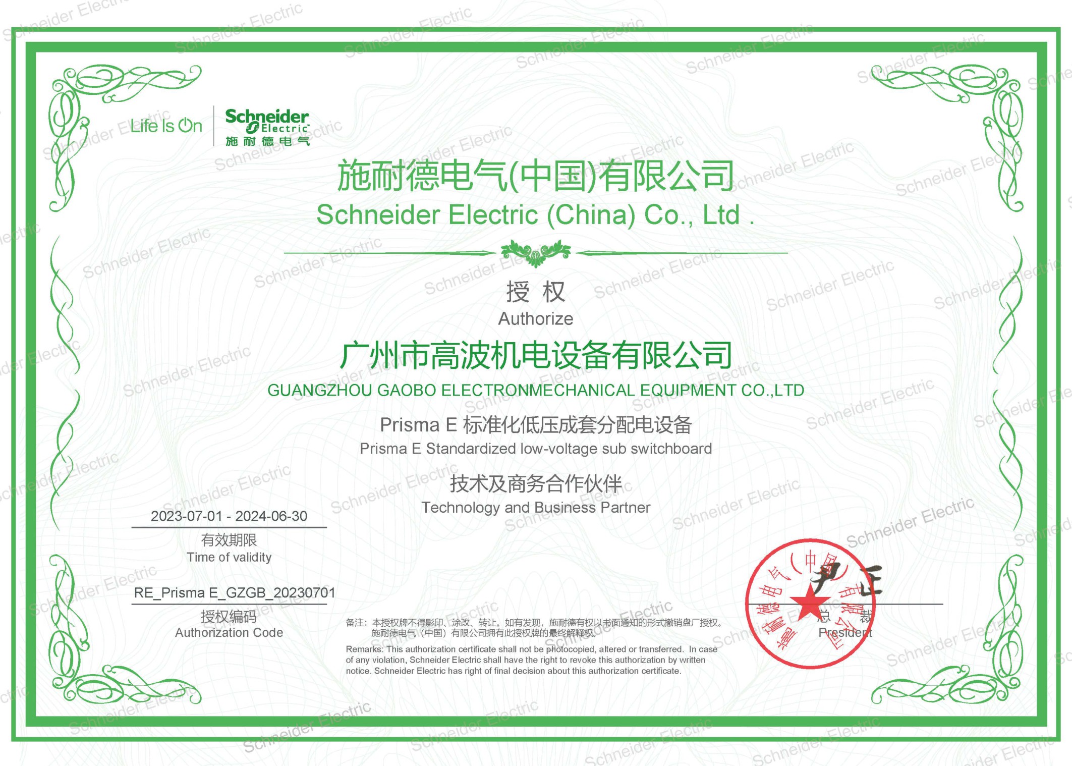 施耐德电气授权技术及商务合作伙伴